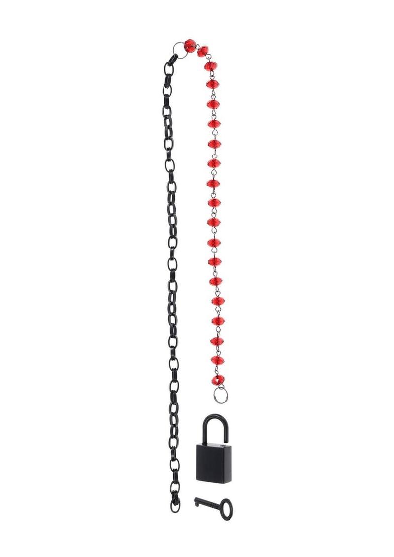 Designed to be worn anytime, anywhere, the Ex's & Oh's Crystal Day Collar is a statement of both style and connection. This elegant collar combines ruby red crystals with a matte black chain, creating a striking piece that balances beauty and boldness. Secured with a lock, it adds a touch of playful submission while remaining discreet enough for the bedroom or as a stylish accessory outside. Whether you wear it to symbolize ownership or simply as a bold fashion statement, this versatile collar lets you carry your connection with you, wherever you go.